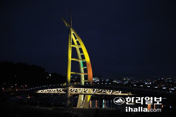 ▷새연교에서는 서귀포항과 함께 범섬·문섬·섶섬이 어우러지는 풍광을 감상할 수 있다. 새연교를 건너면 새섬공원만의 오밀조밀하면서도 고즈넉한 풍경과 함께 숲과 바다의 향기를 만끽할 수 있다.