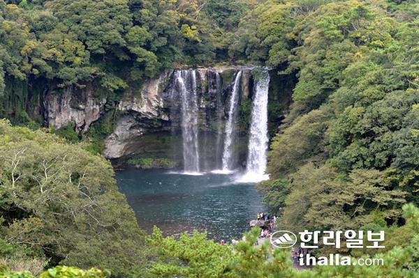 ▷정모시쉼터는 정방폭포의 상류에 위치한 숨겨진 명소다. 최근 알음알음으로 찾는 이들이 늘고 있다. 시원한 물과 아름드리 나무들이 어우러지며 고즈넉한 분위기를 선물한다. 잠시 발을 담그고 쉬어가기에도 그만이다.