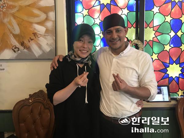 제주시 삼도2동에서 할랄 음식점을 운영하는 모하메드 아민씨와 하민경씨 부부.