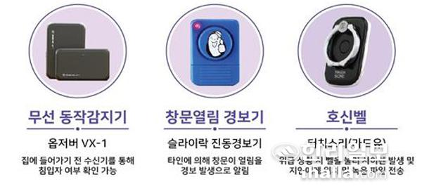 여성 안심 3종 세트는 무선 동작감지센서, 창문열림 경보기, 호신벨 등 총 3가지로 구성됐다.
