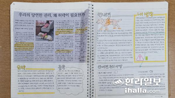 ▶박진희 제주NIE학회 부회장=코로나19로 인해 정상적인 수업이 어려운 가운데에서도 참여해준 학생들에게 먼저 격려의 말을 보낸다. 다양한 미디어 속 신문이라는 매체를 통해 지속적으로 자신의 생각을 표현하고 확장시켜 나가는 모습이 대견했다.