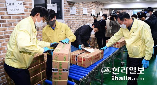 수능을 이틀 앞둔 1일 도내 17개 시험장에 배포될 수능 시험지가 제주도교육청에 도착했다. 시험지는 별도의 장소에 보관된 뒤 시험 당일인 3일 아침 각 시험장으로 운반된다. 강희만기자