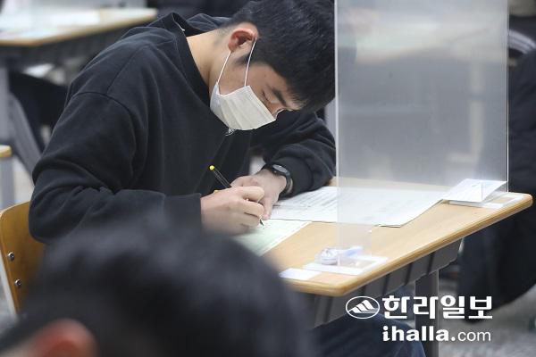 3일 제주제일고등학교에서 수능이 치러지는 모습. 이상국기자