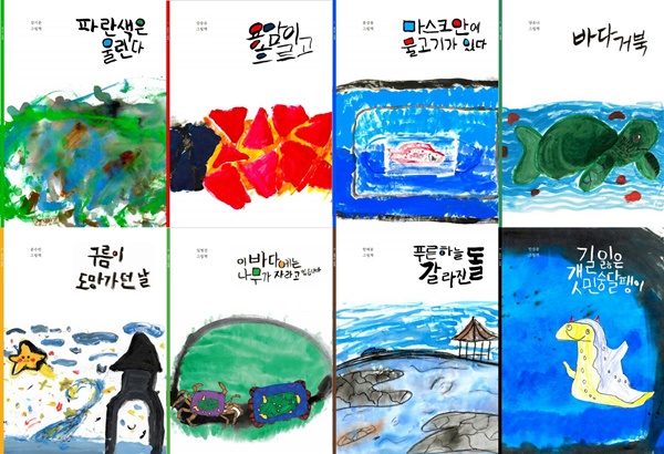 김녕초등학교 6학년 어린이들의 '세계자연유산마을 그림책을 품다' 프로젝트 출품작 일부.
