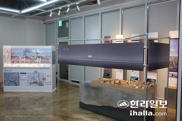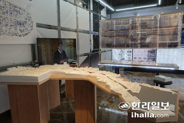 제주시 칠성로 어귀 상생모루 1층에서 젊은 건축가 5인의 '제주 원도심 미래풍경 건축 상상전'이 열리고 있다. 진선희기자