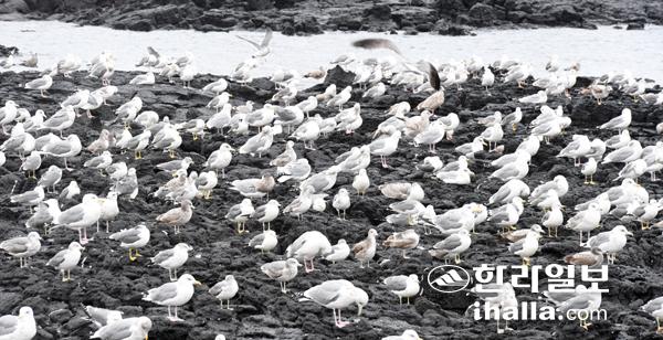10일 제주시 한림해안가 인근 갯바위에서 수백마리의 갈매기들이 휴식을 취하고 있다. 이상국기자