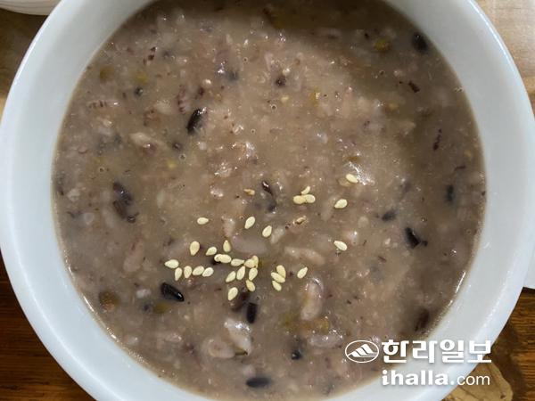 오리를 다 먹고나면 남은 육수에다 라면사리와 청양고추를 넣어 옻라면을 끓여먹을 수도 있는데 칼칼한 국물맛이 일품이다. 모든 음식을 다 먹고나며 흑임자가 들어간 죽이 나오는데 건강식이 따로 없다.