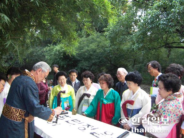 이솝우화에 있는 말인데, 한 노인이 임종이 가까워지자 아들들을 불러놓고 유언을 하길, 자신의 포도밭에 보물을 숨겨놓았으니 그것을 잘 지키라고 했다. 노인이 영면하자 아들들은 그 보물을 찾으려고 포도밭을 모두 뒤졌으나 허탕을 쳤다. 포도밭의 수확철이 되자 포도가 주렁주렁 열려 아들들은 많은 돈을 벌 수 있었다. 그때서야 그들은 크게 깨달았다. 아버지와 함께 날마다 일을 하며 배운 재배 기술 때문에 포도밭을 풍성하게 했고, 진정한 보물이 바로 성실성이었다는 사실을 깨닫고는 부끄러워했다. 한글 서예가 현병찬에게는 스승이 몇 분 있는데 소암, 해정, 김성탁 선생이 그분들이다. "나는 한글을 쓰고 있는데 나에게 지도해주는 분들은 모두 한문 선생님들이었다. 소암 선생님도 한문 선생님이고, 박태준 선생님도 한문 선생님이어서 한문 선생님들의 말씀을 많이 들었는데, 그게 한글 서예에도 바로 직결이 된다. 또 김성탁 선생님에게는 페스탈로치 교육철학을 배웠다." 한국의 서예 예술사에서는 서예하면 단연 한문을 꼽았고, 그것이 대세였다. 한글의 수난사는 일제강점기와 해방후에도 이어졌고, 한글 서예도 오늘날에 와서야 재평가되고 있을 정도다. 사대(事大)의 독이 여전히 오늘날까지 퍼져있는데, 중세에는 중국이, 해방 후에는 일본이, 현대에는 미국이 물질세계와 정신세계를 누르고 있다. 특히 자신의 언어마저 잃어버린다면 영원한 강대국의 속국이 될 건 뻔하다. 자국의 언어가 없다면 그 언어의 모국으로부터 영원히 종속된다는 생각이 세종의 깊은 통찰이었다. 현병찬의 생각 또한 600년 전 세종의 그런 사유와 닿아있다는 것을 알 수 있다. 내 글은 내 정신의 표현이다. 내가 아는 지식도 내가 쓰는 글도 그렇다. 사실 한글의 경쟁력은 우리가 만드는 것이다. 세계의 한류 열풍이 그것을 보여 준 것처럼, 과학·기술·경제 등의 분야도 필요하지만 그것에 덧붙여 더욱 중요한 것이 예술이다. 세계문화사에서 한 사람의 예술가가 중요한 이유를 알 수 있다. 세 분의 스승은 현병찬의 글씨, 내용, 정신세계에 영향을 끼친 인물들이다. 한문은 한자와 문장을 말한다. 한자는 획이 많아 붓의 운용이 다양하므로 거기에서 기교를 배웠다. 한문 문장은 오랜 중국의 전통, 신라 이후 조선의 동국(東國) 문장 전통에서, 사유하는 삶, 한국적 멋과 맛을 배웠다. 이는 다시 제주문화의 대중화를 펼치는 계기가 되었다.