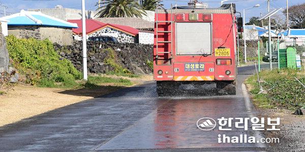 최근 타지역 가금농장에서 고병원성 조류인플루엔자(AI) 바이러스가 검출됨에 따라 27일 제주도 방역당국이 도내 최대 철새도래지인 하도철새도래지에서 선제적 방역활동을 펼치고 있다. 강희만기자