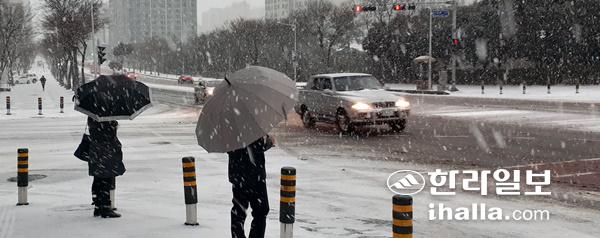 제주지방기상청에 따르면 제주지방은 기압골의 영향으로 5일 오전까지 약하게 비가 내리고 중간간은 비 또는 눈, 산지에는 눈이 내리겠다.