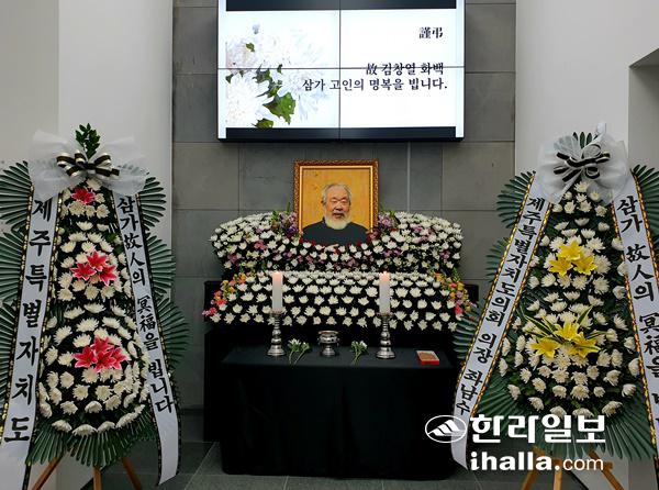 제주도립 김창열미술관 로비에 설치된 분향소. 박세인기자