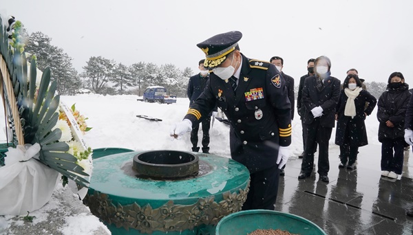 제주4·3평화공원 참배하는 강황수 제주경찰청장.