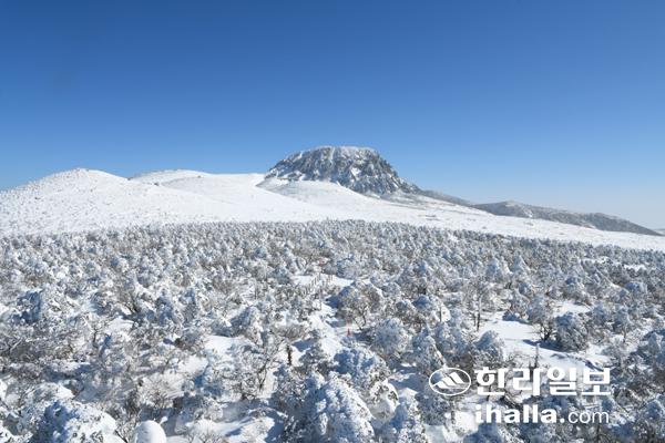 최근 며칠새 눈날씨가 이어지면서 설경이 절정에 달한 한라산 선작지왓 일대가 마치 겨울왕국을 연상케 하듯 하얀 눈세상을 보여주고 있다. 사진=난대아열대산림연구소 제공