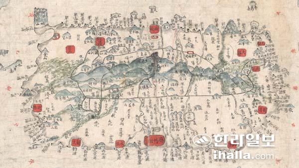 제주도의 옛 지리 환경을 보여주는 화첩 '탐라순력도' 중 한라장촉.
