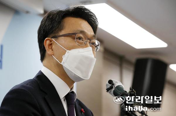 김진욱 초대 고위공직자범죄수사처장이 21일 오후 정부과천청사에 열린 취임식에서 취임사를 하고 있다. 연합뉴스