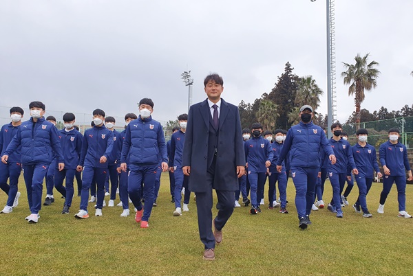 제주Utd U18 이상호 감독(가운데).