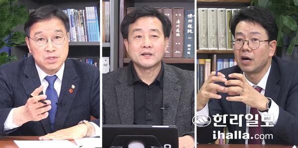 한라일보와 (사)제주와미래연구원은 공동기획의 일환으로 '제주형 뉴딜의 성공 전략'을 주제로 토론을 진행했다. 이날 토론회는 위성곤 국회의원(더불어민주당, 서귀포시)과 김영환 전력거래소 제주본부장, 강순원 한살림제주 전무이사가 참석했다.