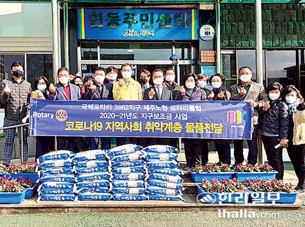 제주노형로타리클럽(회장 한석)은 다가오는 설 명절을 맞이해 연동지역의 어려운 이웃에게 전달해 달라며 백미(10㎏) 30포를 지난 21일 연동주민센터에 기탁했다.
