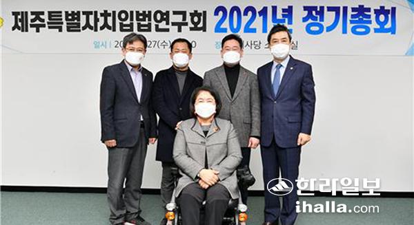 제주특별자치도의회 제주특별자치입법연구회(대표 정민구 부의장)는 27일 의사당 소회의실에서 농수축경제위원회 현길호 위원장, 교육위원회 부공남 위원장, 김경미 의원 등이 참석한 가운데 2021년 정기총회를 개최했다.