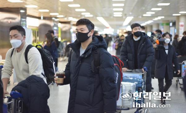 SK 와이번스 내야수 최주환이 1일 전지훈련이 열리는 제주공항에 도착해 이동하고 있다. 연합뉴스