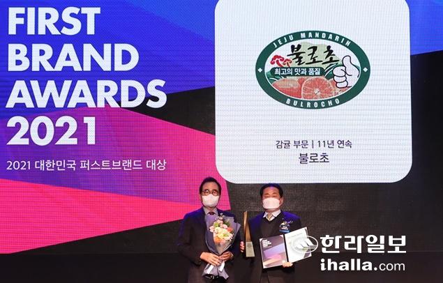 제주감귤농협의 대표 브랜드인 '불로초'가 '2021 대한민국 퍼스트브랜드 대상' 과수부문에서 11년 연속 대상을 수상했다.