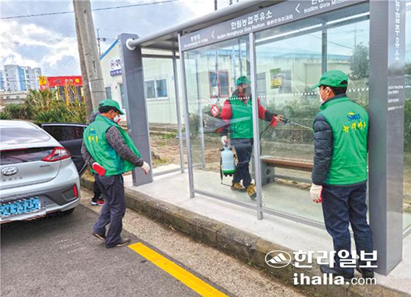 새마을지도자한림읍협의회(회장 고성영)는 지난달 28일 회원 20여 명이 참여한 가운데 지역주민의 안전한 생활환경을 조성하고 살기 좋은 한림읍을 만들기 위해 관내 버스승차대 방역활동을 전개했다.