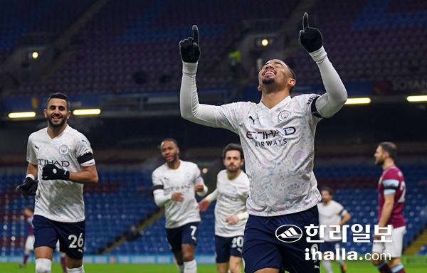 결승골 득점 후 기뻐하는 맨시티의 제주스(오른쪽). 연합뉴스