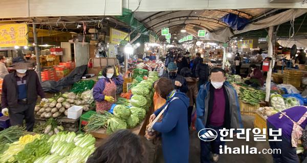 김영철 제주시 민속오일시장 상인회장은 "명절을 앞둬 제수용품을 구입하려는 방문객들의 발길이 이어지면서 과일코너와 생선코너 등에 많은 인파가 몰렸지만 의류 등 기타 코너는 여전히 매출 부진을 이어가고 있는 실정"이라며 "더욱이 최근 지역 내에 들어선 중·대형 마트로 인해 제주지역 전통시장이 전체적으로 침체기를 겪고 있다"고 토로했다. 그러면서 "날씨가 풀리면 오일시장을 찾는 방문객이 늘어날 것으로 예상됨에 따라 상인회에서는 지속해서 코로나19 감염 예방을 위한 방역수칙 홍보 활동을 전개해 나갈 계획"이라고 말했다.
