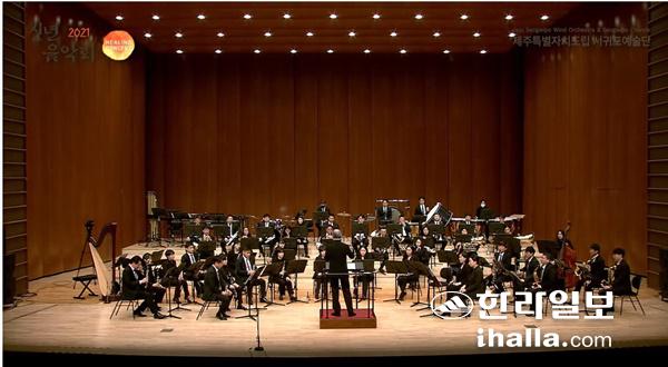 '제주인놀다'에 링크된 제주도립 서귀포예술단 신년음악회 서귀포관악단 연주 장면.