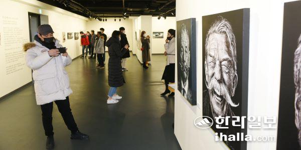 18일 한라일보 1층 갤러리 이디(ED)에서 '시간'을 제목으로 내건 문창배 초대전 오프닝 행사가 열렸다. 이상국기자