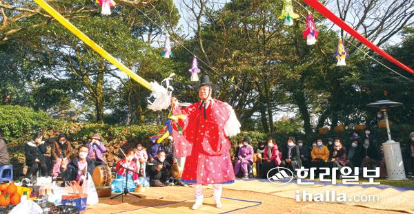 음력 1월 13일인 24일 제주시 구좌읍 송당본향당에서 제주도 무형문화재 제5호 송당리마을제 의식재현사업으로 한 해의 무사 안녕과 풍요를 기원하는 신과세제가 진행됐다. 송당리마을제 의식재현사업을 주관한 제주문화예술재단은 25일부터 3월 1일까지 송당본향당 입구에 도민 소원을 담은 '코로나 극복 바람-천개의 바람 꽃'도 전시한다. 이상국기자