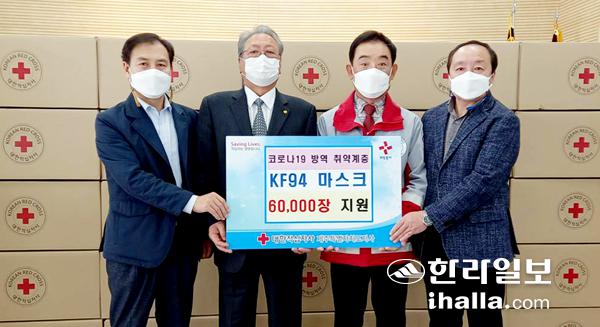 대한적십자사제주특별자치도지사(회장 오홍식)는 지난 23일 대한노인회제주특별자치도연합회(회장 강인종)에 코로나19 감염 예방을 위한 KF94 마스크 6만장을 전달했다.