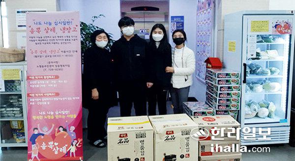 제주시 노형동에 거주하는 박혜원·박혜민·박유범 학생은 지난 22일 라면, 햇반, 김 등 식료품을 구입해 노형동주민센터(동장 한명미)를 방문해 어려운 이웃을 돕기 위해 운영하는 솜뽁 살레에 전달했다.