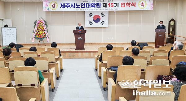 (사)대한노인회제주시지회(지회장 김태흥) 부설 제주시 노인대학원(원장 고유봉)은 10일 제주시 노인복지회관에서 제주시 노인복지관계자, 노인회 임직원 및 학생회 임원과 신입생이 참석한 가운데 제15기 입학식을 가졌다.