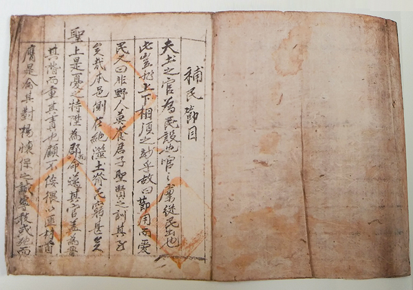 호적중초보다 1년 앞선 1866년 작성된'보민절목(補民節目)' 일부. 한홍일 대정현감이 흉년을 맞아 구휼 기금을 마련하고 이를 각 마을별로 지급해 그 이자로 실정에 맞게 사업을 운영하도록 정한 내용을 담고 있다.