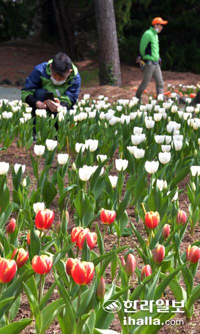 15일 제주시 한림읍 한림공원에 튤립이 화사한 꽃을 피워 올리며 남국의 봄소식을 전해주고 있다. 강희만기자