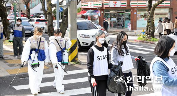 대한적십자사제주특별자치도지사(회장 오홍식)는 지난 21일 제주시 전농로 일대에서 대학RCY 회원 등 20명이 참여한 가운데 소독방역 및 환경정화 캠페인을 실시했다.