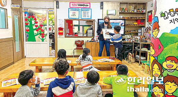 제주국제교육원 서부외국문화학습관은 지난 19일 한림읍 관내 한사랑지역아동센터 4~6학년 학생들을 대상으로 원어민 교사와 함께하는 '지역아동센터 영어학습 지원 프로그램'을 운영했다.