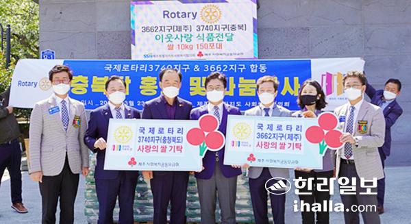 국제로타리3662지구(제주·총재 고권진)와 3740지구(충북·총재 김승기)는 지난 23일 제주특별자치도사회복지협의회에서 사랑의 쌀 150포를 제주사회복지공동모금회(회장 김남식)에 기탁했다.