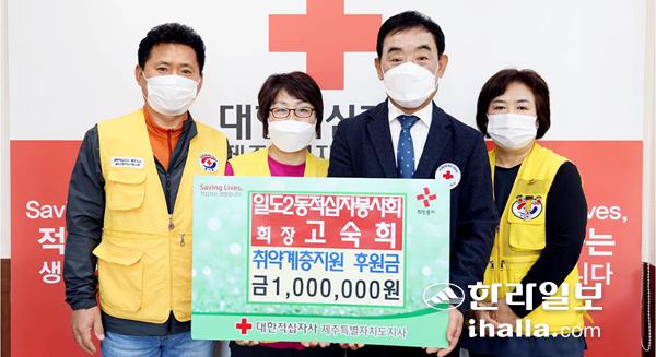 고숙희 일도2동적십자봉사회장은 지난 23일 대한적십자사제주특별자치도지사(회장 오홍식)에 취약계층 지원을 위한 후원금 100만원을 기탁했다.