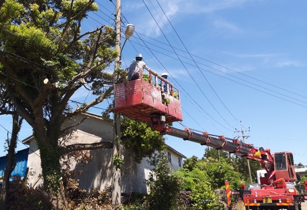 서귀포시가 봄철을 맞아 도심 생활권 주변 재해목 정비를 하고 있다.