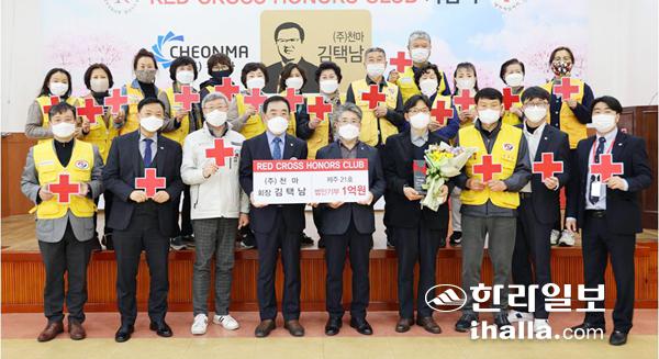 (주)천마(대표이사 양상현)는 지난 23일 적십자사 나눔홀에서 대한적십자사제주특별자치도지사(회장 오홍식)에서 실시하는 레드크로스 아너스클럽(Red Cross Honors Club, 이하 RCHC)에 21호로 가입했다.