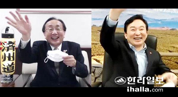 원희룡 제주특별자치도지사는 지난 24일 일본 아오모리현 미무라 신고(三村申吾)와 한-일간의 우호 증진을 위한 교류 협력을 논의하기 위한 화상 면담을 가졌다.