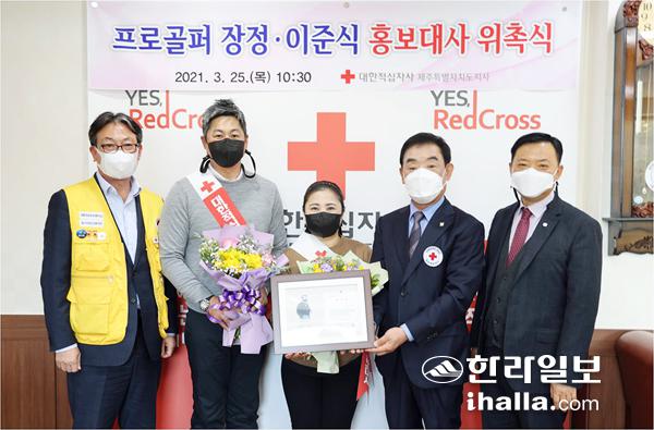 대한적십자사제주특별자치도지사(회장 오홍식)는 지난 25일 적십자사 회장실에서 프로골퍼 장정, 이준식씨를 제주적십자사 홍보대사로 위촉했다.