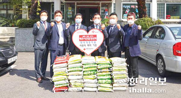 제주시연합청년회(회장 고성균)는 지난 26일 제주적십자사에서 대한적십자사제주특별자치도지사(회장 오홍식)에 취약계층 지원을 위한 백미 40포(120만원 상당)를 기탁했다.