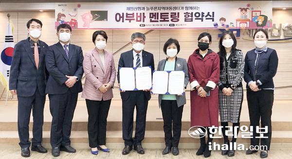 제민신협(이사장 고문화)은 29일 늘푸른지역아동센터와 '2021년도 신협 어부바 멘토링 지원사업'의 성공적인 추진을 위해 상호협력에 관한 업무협약식을 가졌다.