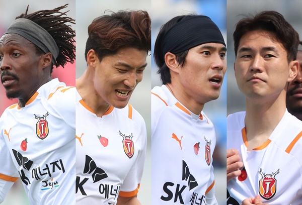 제주Utd 공격 선봉장 역할을 맡아줄 제르소 주민규 진성욱 조성준(왼쪽부터).