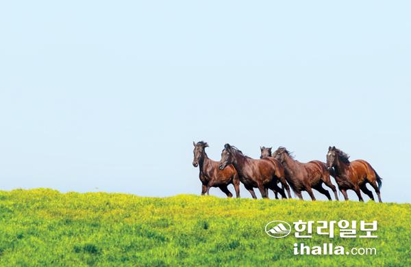 6일 농촌진흥청 국립축산과학원 난지축산연구소 말 방목장에서 국내산 승용마들이 힘차게 달리고 있다. 농촌진흥청은 국내산 승용마 100여 마리를 4월부터 11월 말까지 약 8개월 동안 한라산 난지축산연구소 초지에 방목했다. 사진=농촌진흥청 제공