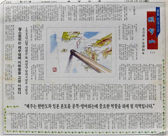 1994년 2월 2일자 한라일보 주간소설 '한라산' 1회 연재 신문.