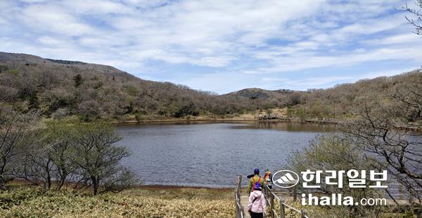 21일 세계자연유산 한라산 성판악 탐방로 인근에 자리한 산정호수인 사라오름 분화구에 물이 가득차 장관을 연출하고 있다. 강희만기자